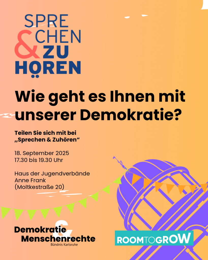 Zu dieser Frage laden wir Sie zur Veranstaltung „Sprechen & Zuhören“ am Donnerstag, den 18. September von 17.30 bis 19.30 Uhr in das Haus der Jugendverbände Anne Frank (Moltkestraße 20, 76133 Karlsruhe) ein.
